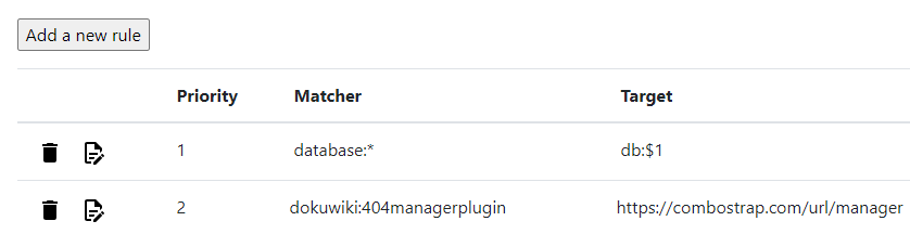 If a page called dokuwiki:404managerplugin does not exist, the router will send a permanent redirect to the page https://combostrap.com/url/manager