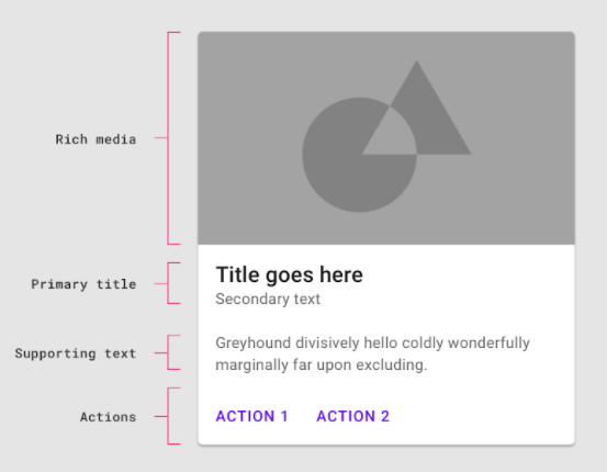 - header defines a label placed at the top of the card
