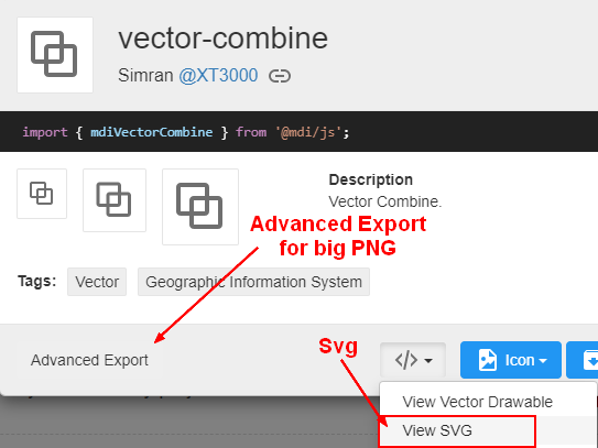 In our case we have chosen an icon directly from https://materialdesignicons.com/